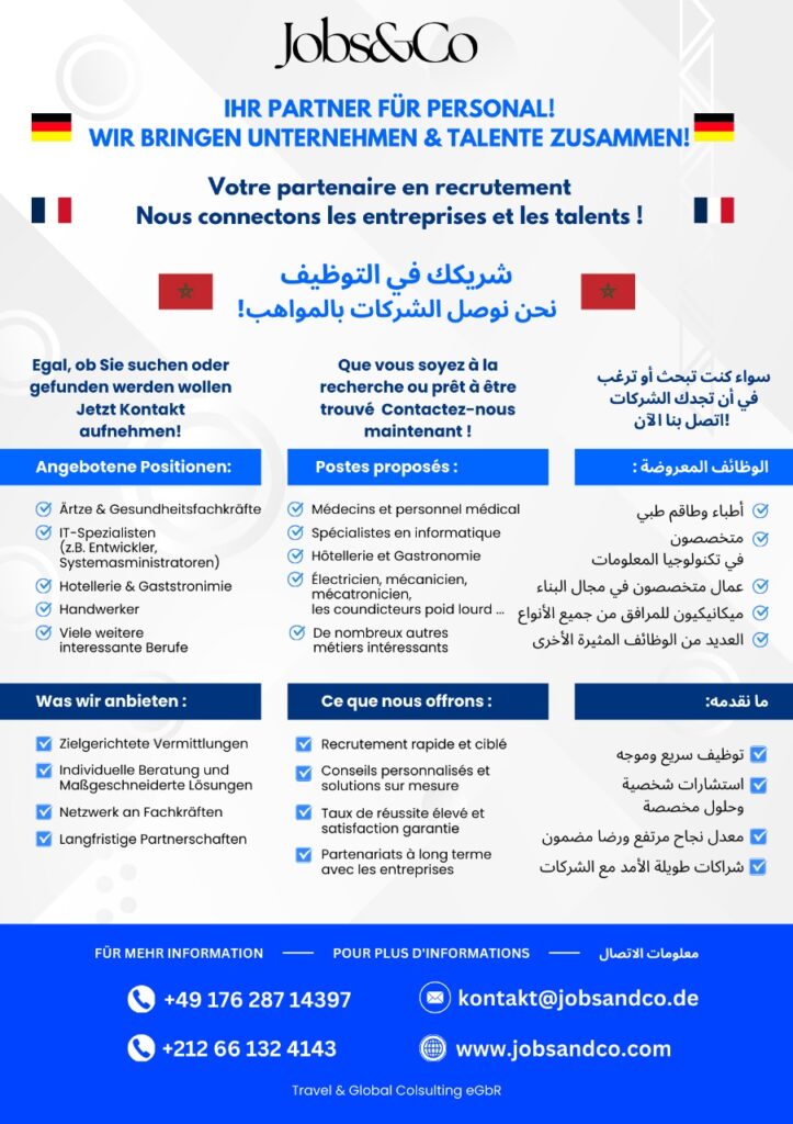 Jobs&Co vermittelt qualifizierte Fachkräfte und Nachwuchstalente aus dem Ausland an Unternehmen, um deren langfristigen Erfolg zu sichern. Wir unterstützen Betriebe in Branchen wie Medizin, Pflege, IT, Automobilindustrie und Bau dabei, dem Fachkräftemangel gezielt entgegenzuwirken.